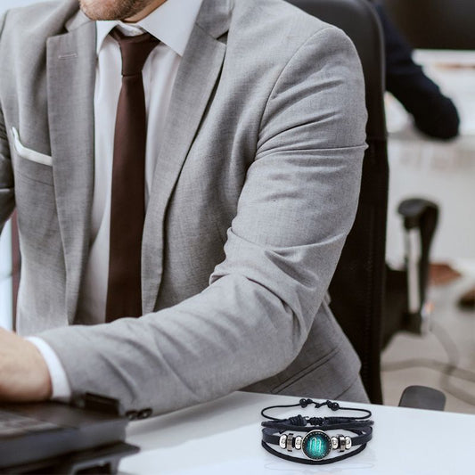 Luminous 12 Constellations Bead Leather Woven Bracelet - Great Gift