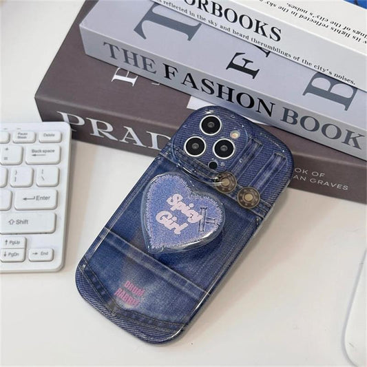 Printed Denim Shockproof Case With Heart Popsocket