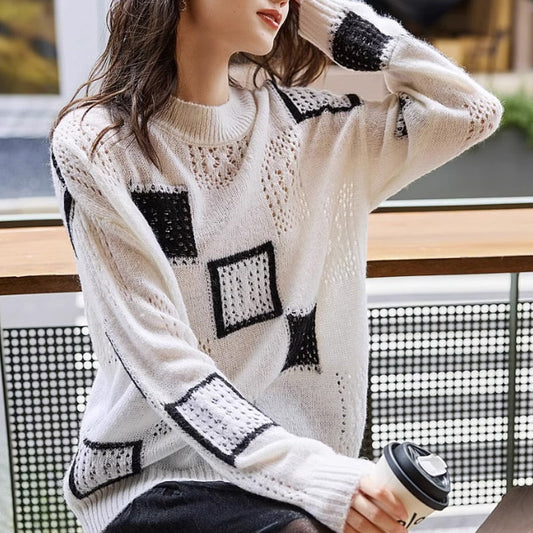 Women's Color Block Plaid Print Knitted Pullover Sweaters