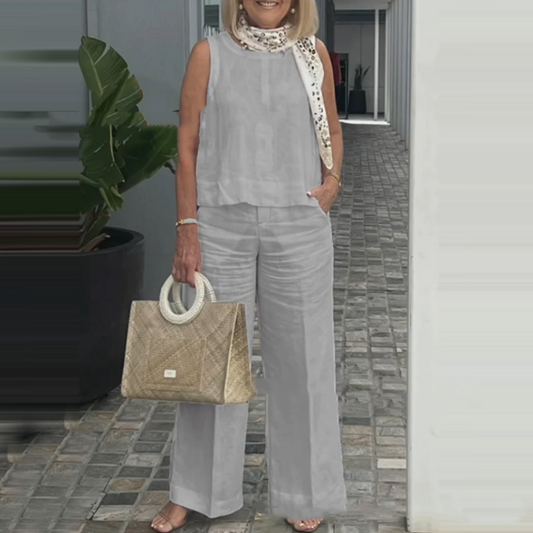 Women's Simple Breathable Suit - Round-Neck Sleeveless Top & Wide-Leg Pants