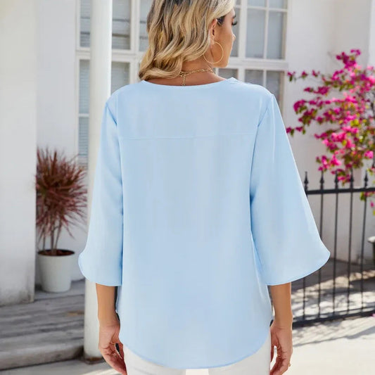 Women's Trendy Loose-Fit Round Neck Floral 3/4 Sleeve Shirt