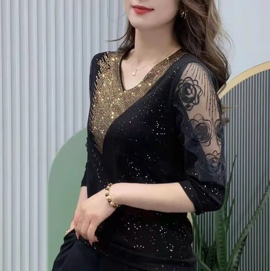 【M-4XL】New Versatile Diamond Lace Blouse For All Body Types