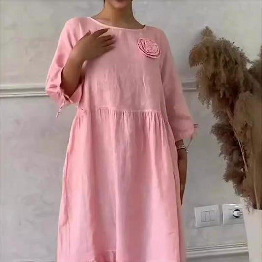 Elegant Printed Dress for Women – Stylish & Comfortable Fit👗Women’s Elegant Loose Round-Neck Printed Dress