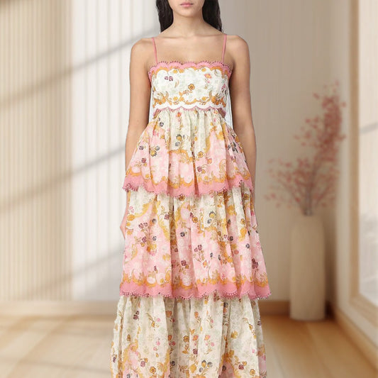 Fashion Floral Spaghetti Strap Tiered Layered Dress