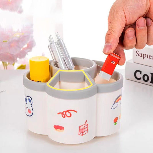 360 Degree Rotating DIY Decor 6 Slots Desk Pencil Pen Holder
