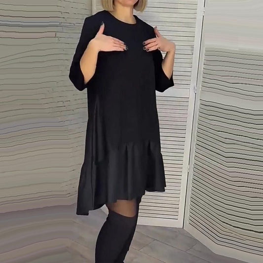 Loose Pleated Elegant Black Dress with Seven-pointed Sleeves