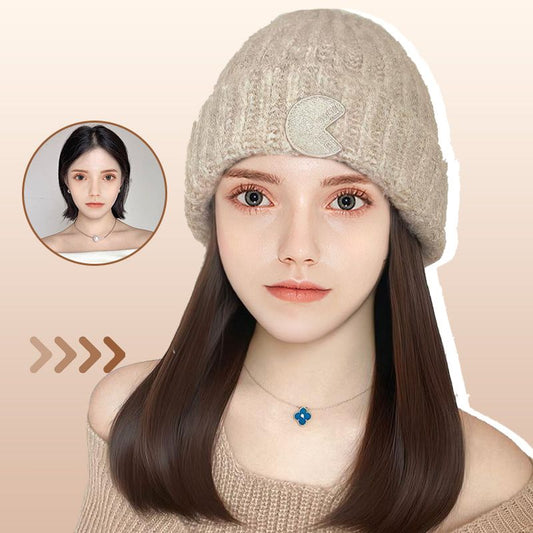 Women’s Knitted Beanie Hat with Hair Extension