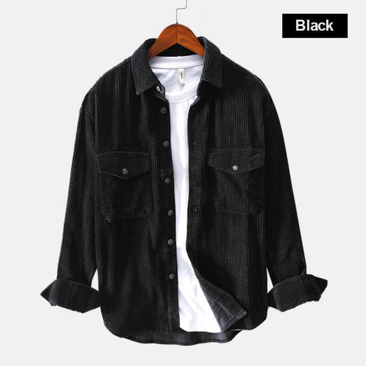 Men's Corduroy Shirt Button Long Sleeve Casual Blouse