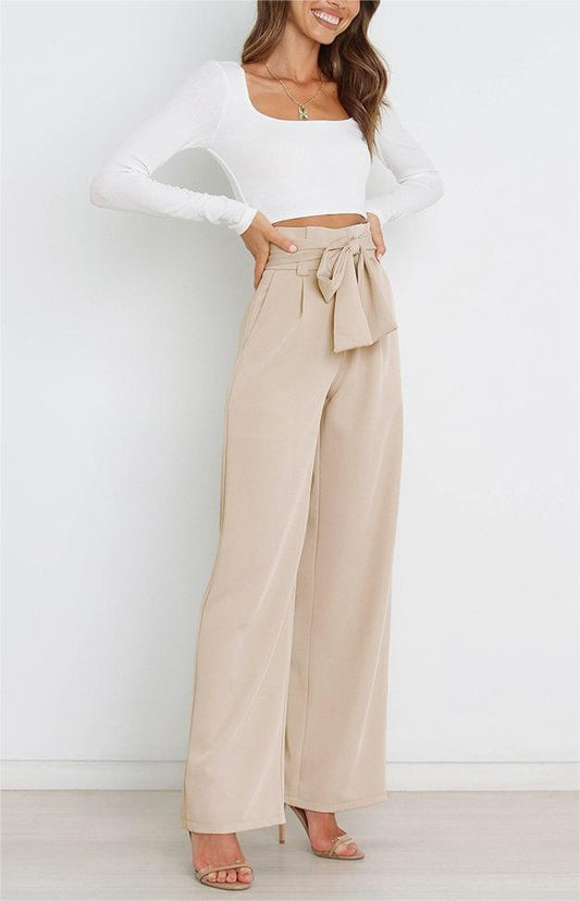Women'S Casual Wide-Leg Pants Bow Trousers