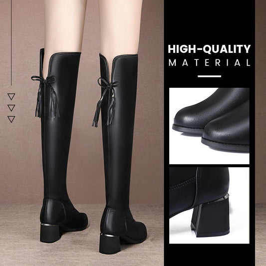 🔥Pointed Toe Chunky Heel Knee High Boots