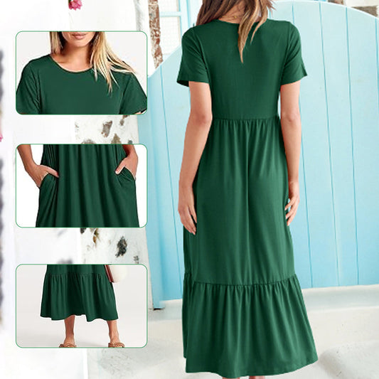 👗Women's Stylish Casual V-Neck Dress with Elastic Waist