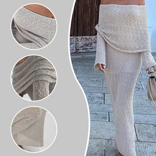 💃Open Shoulder Long-Sleeve Knit Bodycon Dress