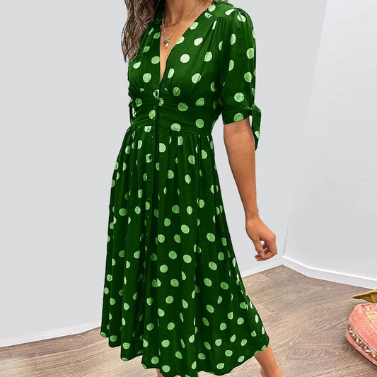 Women's Summer Deep V-Neck Polka Dot Elegant Dresses