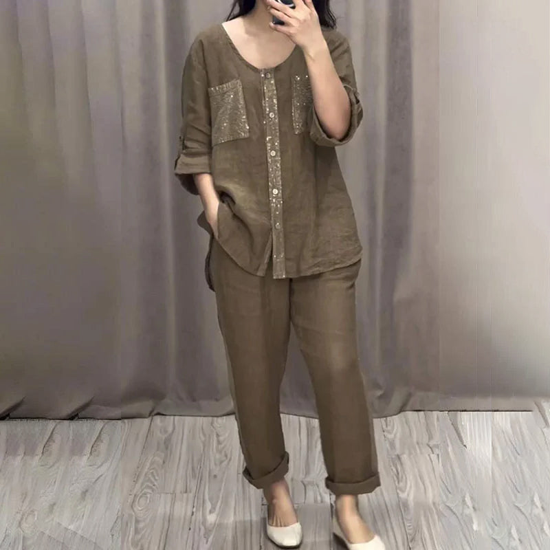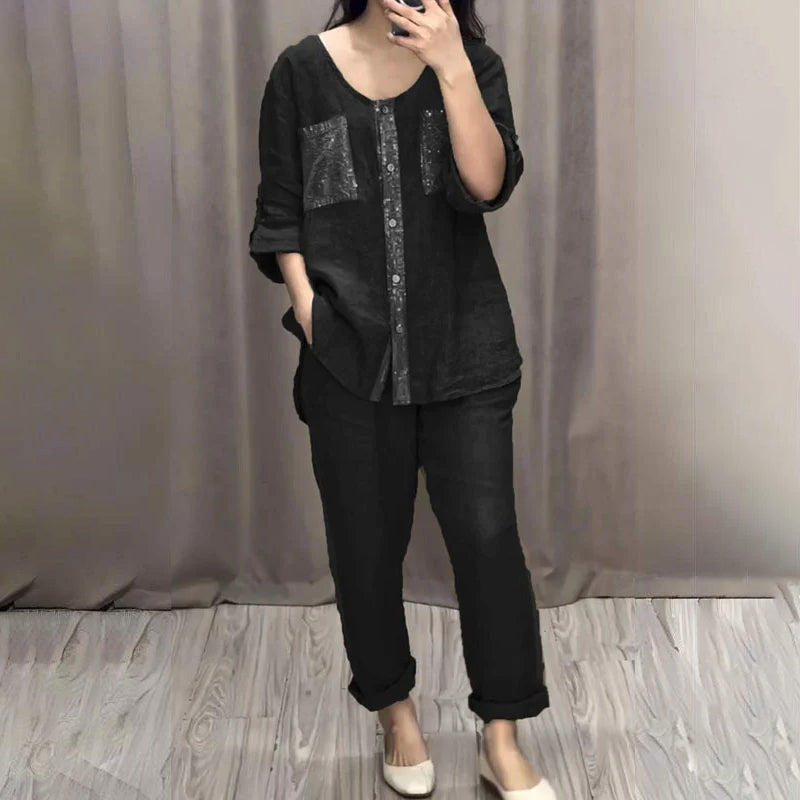 Made from soft and breathable fabric, it offers all-day comfort without compromising on style. Whether you're staying in or stepping out, this set effortlessly combines fashion and leisure for a chic and laid-back ensemble. Elevate your casual wardrobe with our Loose Fit Leisure 2-Piece Set and embrace comfort without sacrificing style!