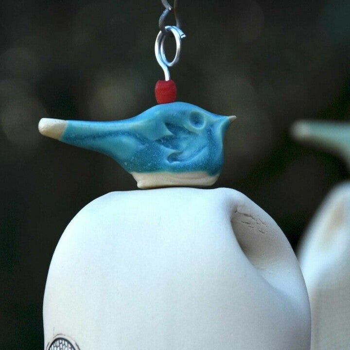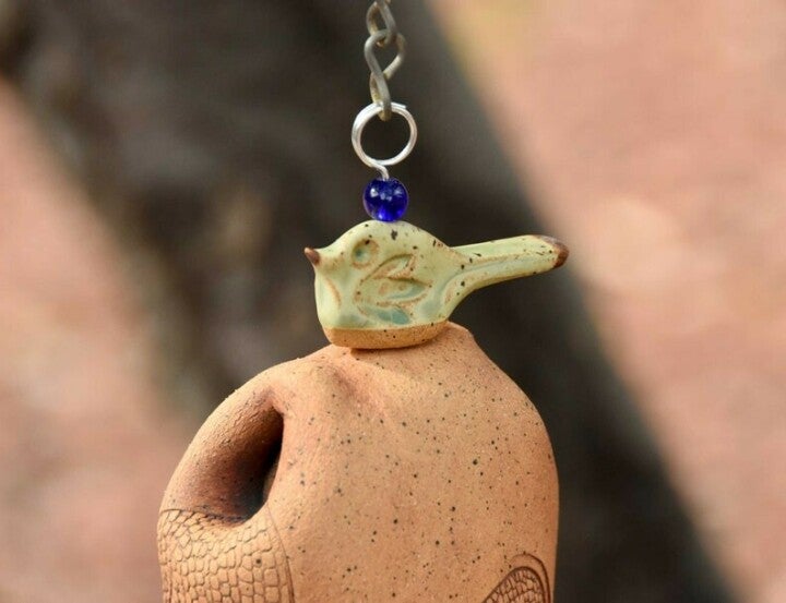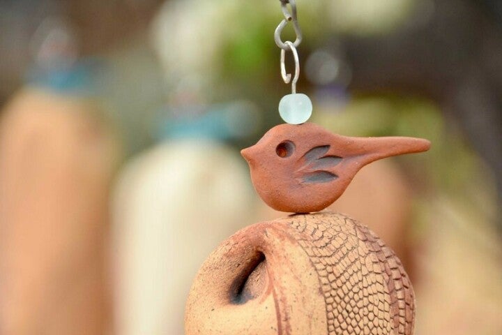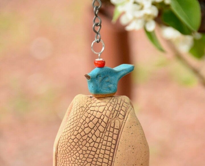 My bells create a peaceful, zen-like sound for the outdoors with a wooden clapper. Makes a perfect Christmas, wedding, or housewarming gift. Unglazed stoneware clay fired to 2200 degrees makes it very durable.