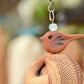 Features a beautiful dragonfly wings pattern, accented by a patina'd copper wind sail. A small ceramic sculptured bird in glazed blue or glazed green or Rustic Red sits atop the bell.
