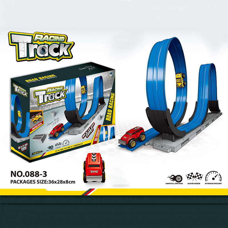 INTERACTIVE RACING FEATURES: Enjoy thrilling races with interactive elements like ramps and loops. The included inertia track car enhances the excitement, encouraging friendly competition among friends and family as they race to victory.