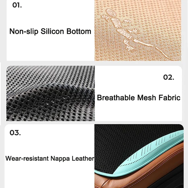 The car seat cushion is made of superior mesh fabric and nappa leather which is soft, comfortable, breathable and wear-resistant. It will lower the temperature quickly and make you cool in hot summer.
