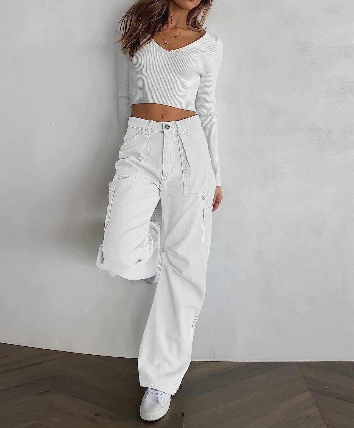 Loose Fit with Y2K Style --- This casual cargo jeans features low rise design, have a loose fit with y2k style, simple but versatile, fits for most people, and you can wear them without feeling constricted, also come with huge functional cargo pockets for easy access to your belongings and to keep cool. Suitable for the girls who what to dressed up as y2k style to make you be the coolest and sexiest girl in the street.
