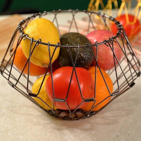 - From a simple fruit basket to more modern funky shapes, you can change the whole look just by pushing on the sides! It's unique and stands out.such a cool and inventive fruit basket.