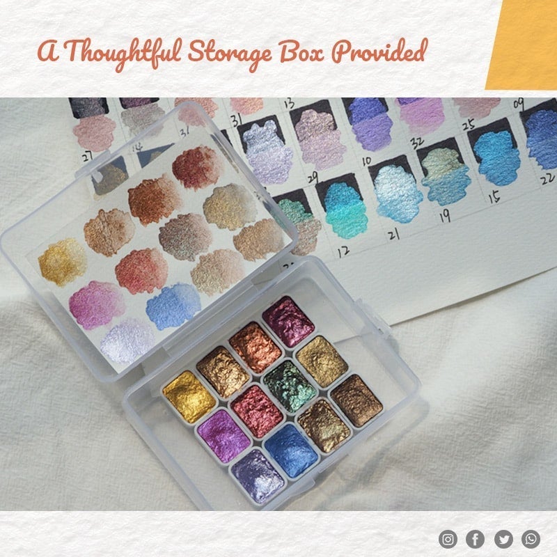 A storage box is provided, and 12 colors are separately packed with tight closure. It will not be confused, and there is no need to worry about leakage.