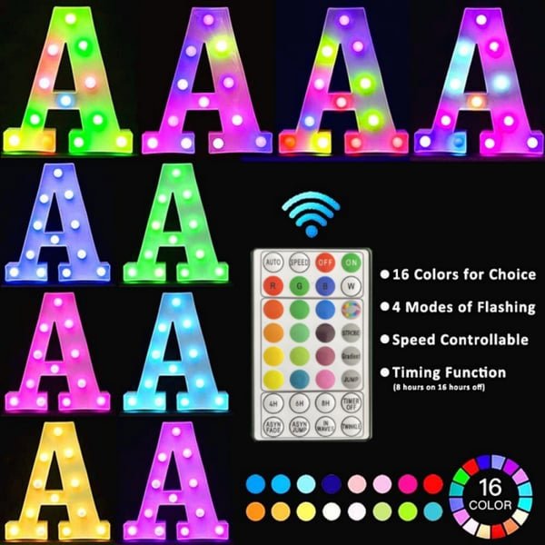Distinguished from the common warm white version, this upgraded marquee letter light can change 16 colors which provide more options of color choice. Get one to make your celebration more colorful.