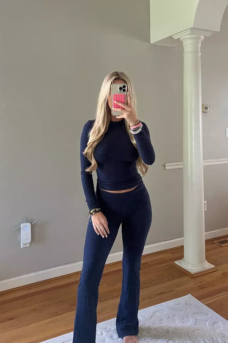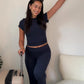 The comfiest lounge staple set. A fitted round neck T-shirt paired with stretchy casual pants, which is super flattering!