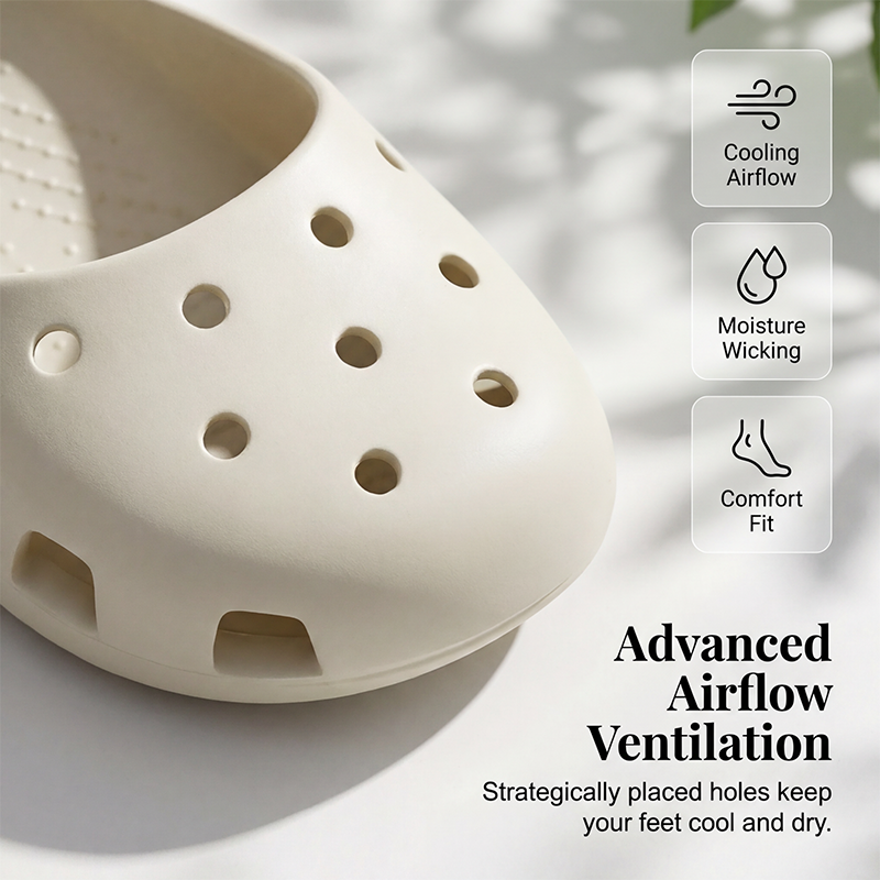 VENTILATED HOLLOW-OUT DESIGN - Keeps your feet cool and dry during warm weather. The strategically placed holes promote excellent airflow, preventing sweat and odor buildup for all-day freshness and comfort.