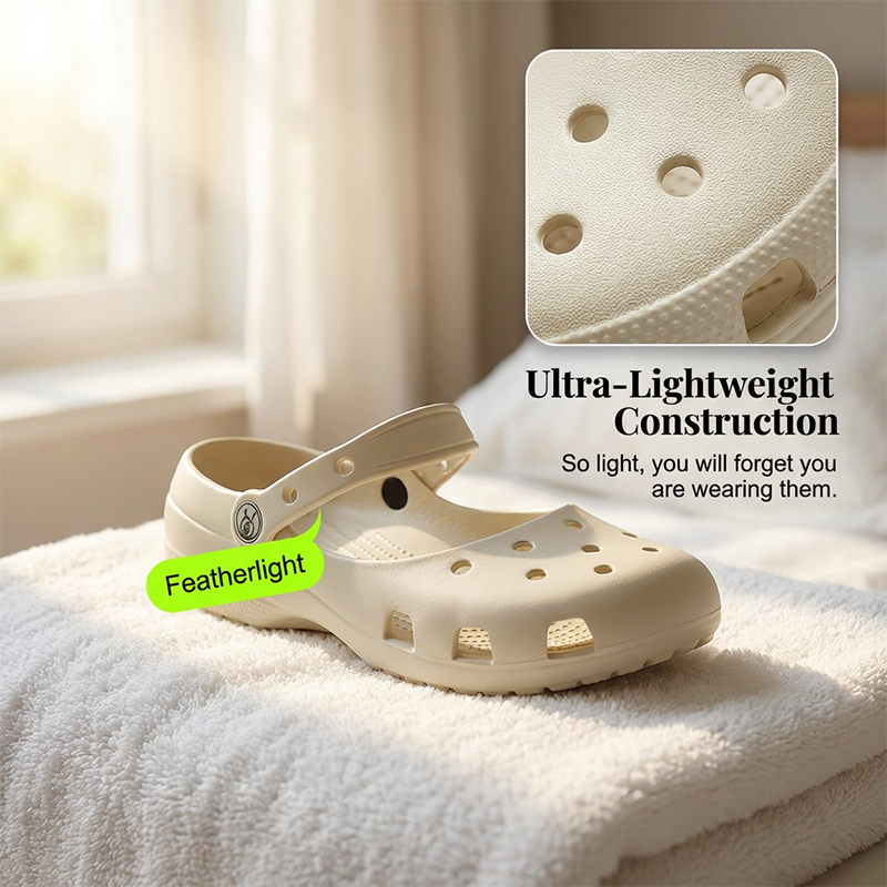 LIGHTWEIGHT EVA CONSTRUCTION - Experience cloud-like comfort with every step. The feather-light material reduces foot fatigue, making these shoes ideal for long hours of standing or walking without feeling weighed down.