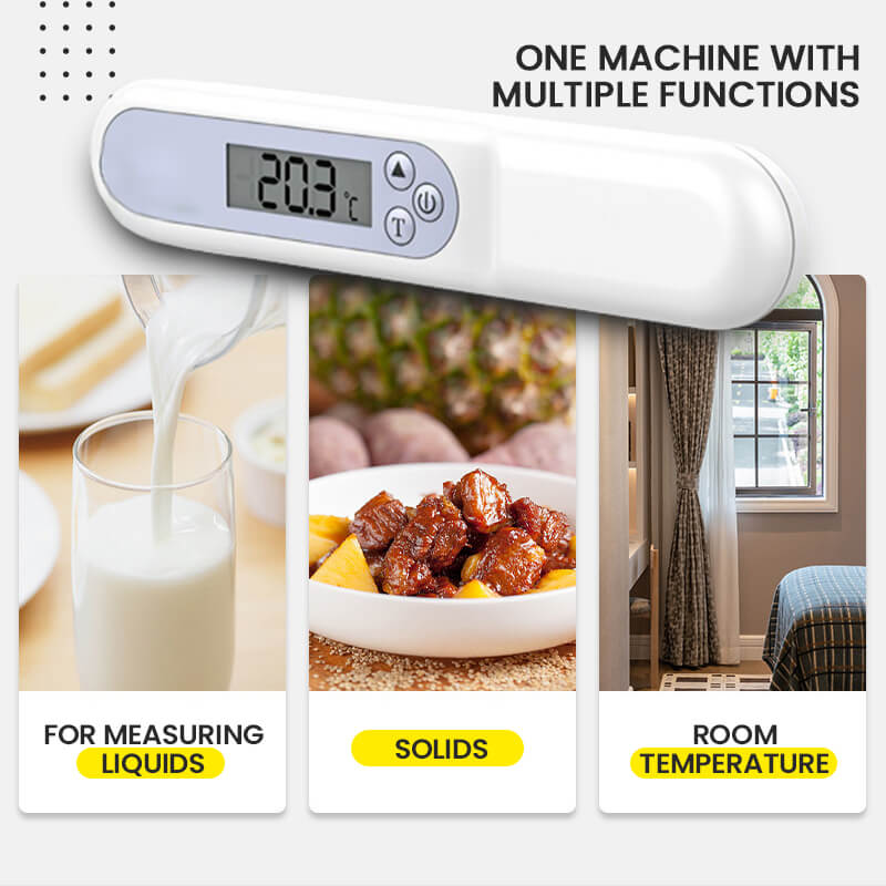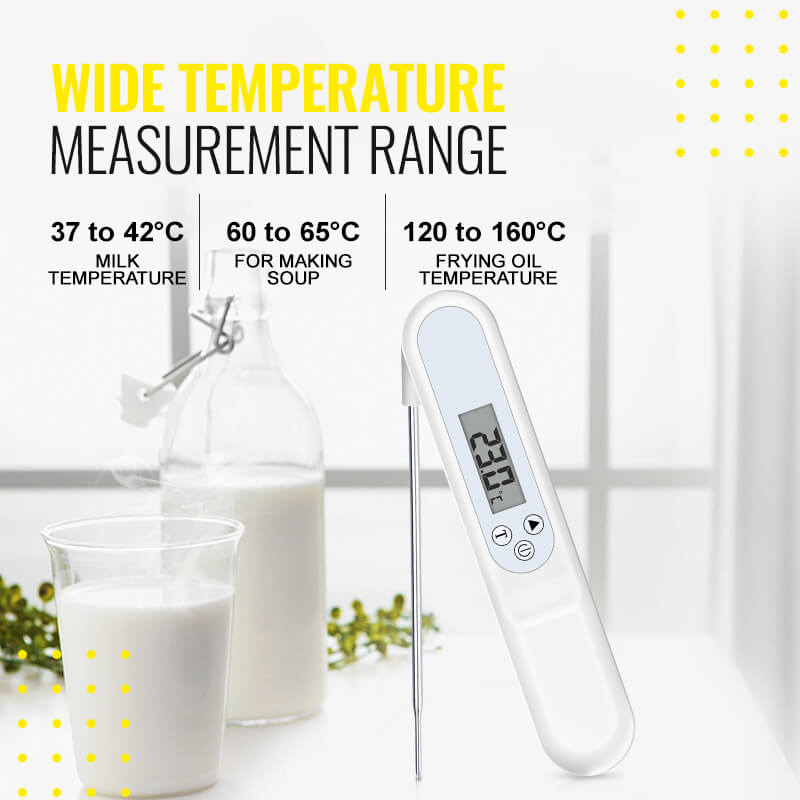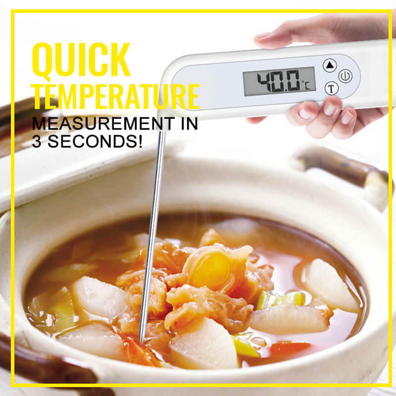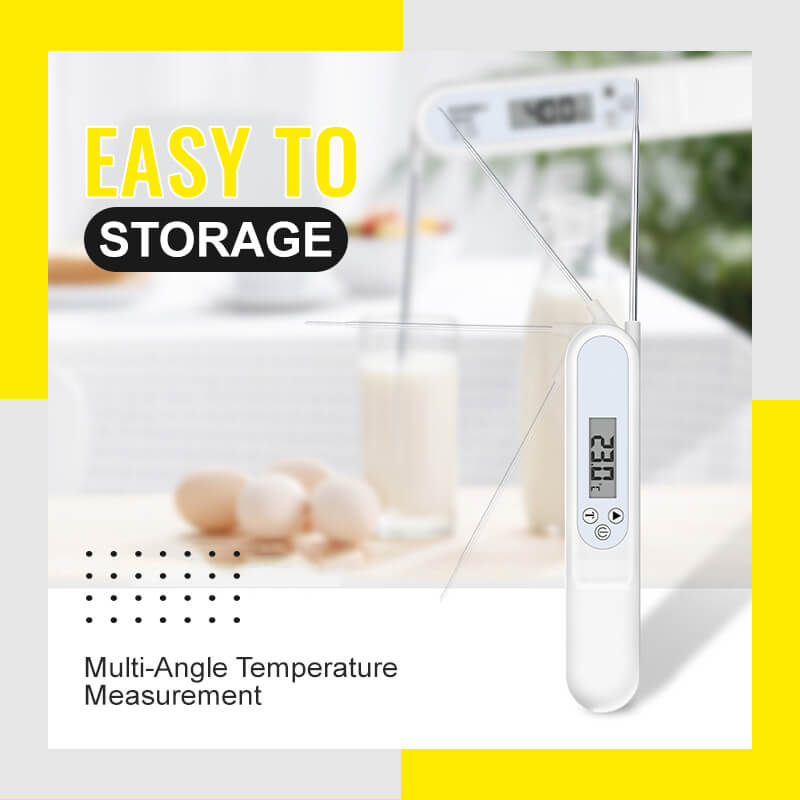 - Here is the deal! It will be a good helper to assist you to a new level of cooking work. This is an effective solution to achieve the most accurate temperature in a matter of seconds. With a simplistic yet practical design, the foldaway probe will pop open for quick and easy temperature reading.
