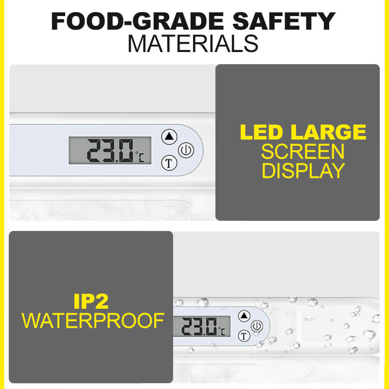 Food grade material, temperature measurement safety, ABS shell + 304 stainless steel probe, safe and reliable. Corrosion-resistant, high temperature resistant, easy to clean, no rust, waterproof, not easy to damage, more durable.