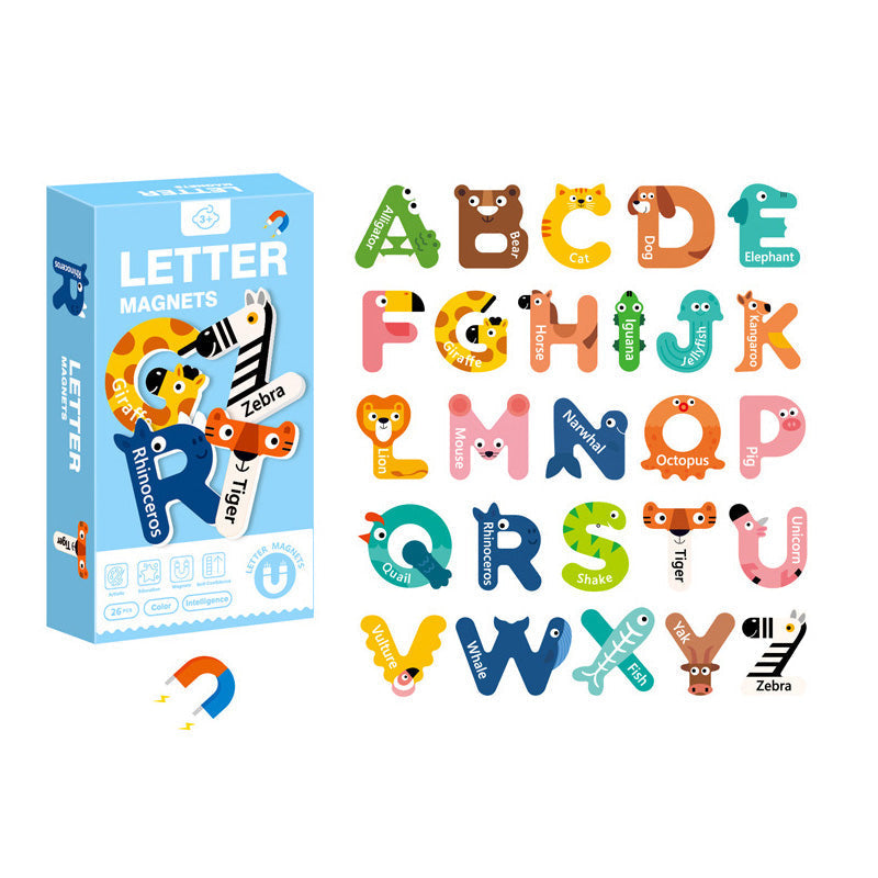 ATTRACTIVE DESIGN: With 26 large magnetic uppercase letters, each adorned with vivid animals representing the letter, like "A" for alligator, our set adds creativity to learning. Children will enjoy discovering the connection between animals and letters.