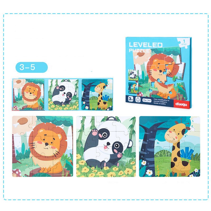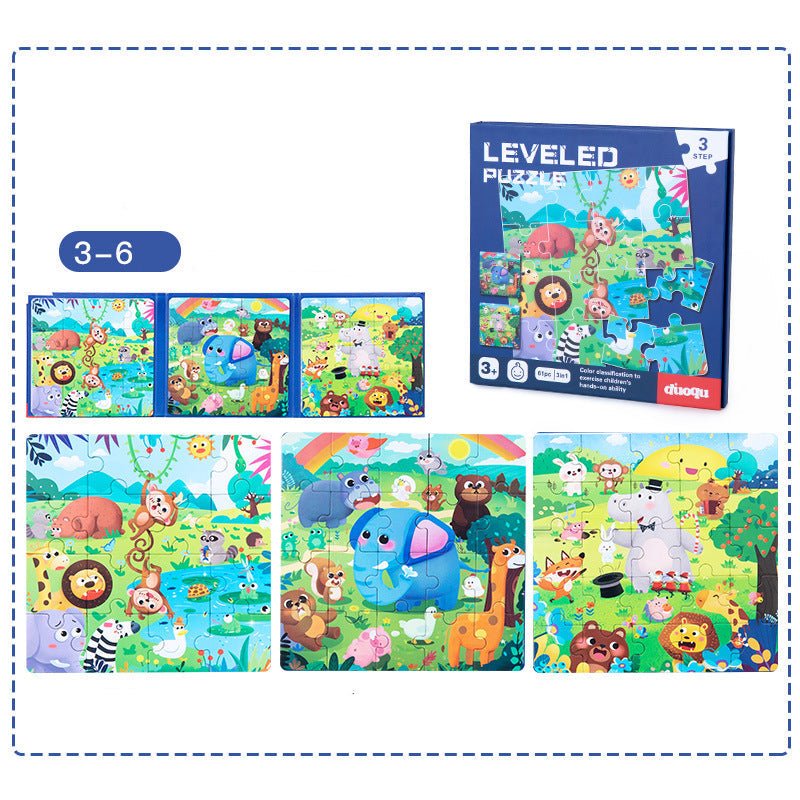Magnetic puzzle set includes 3 illustrations. There are 16, 20 and 25 pieces for a total of 61 pieces, ranging from easy to difficult, and the puzzles come with a 1:1 reference template to make them fun and challenging.