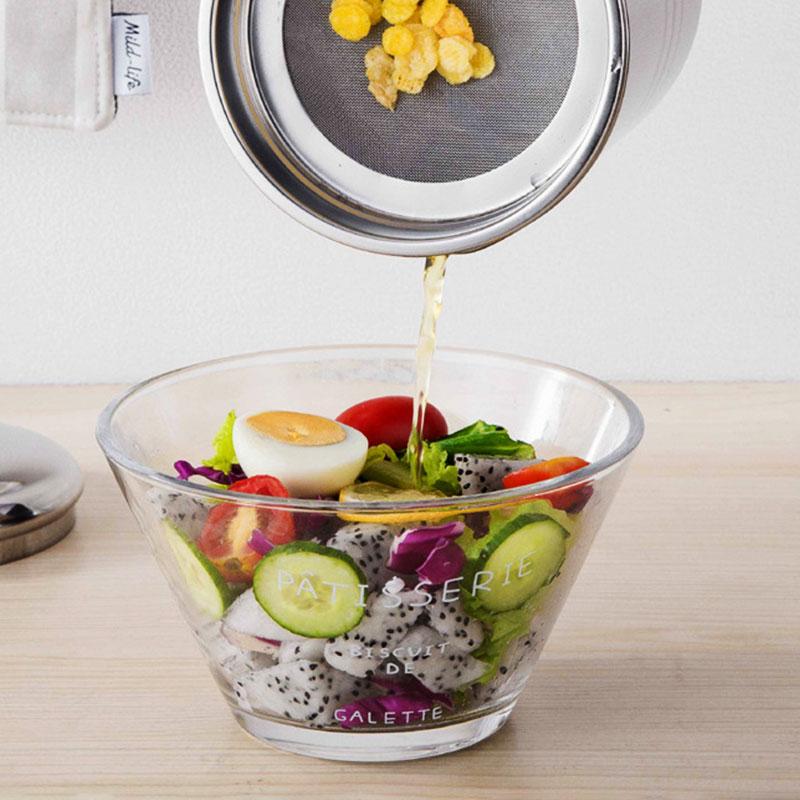 The entire grease container is made of food-grade 18/8 (SUS304) stainless steel. Durable, non-rusting, and corrosion-resistant. Brushed texture appearance, simple atmosphere.