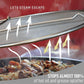 With a long, sturdy plastic handle that allows you to keep a safe distance from hot objects and burns. The high-quality stainless steel mesh guard is tightly woven to block the oil splatter while still allowing for steam to exit.