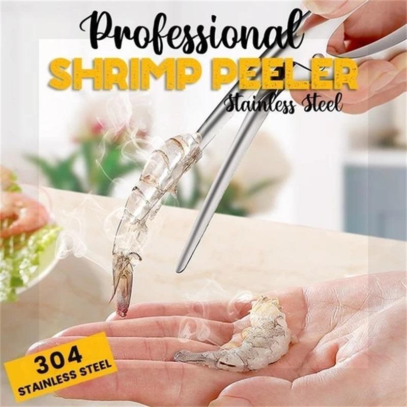 - How to use Professional Shrimp Stainless Steel Peeler: First, remove the shrimp head. Next, hold the handle of the peeler and slowly insert the sharp tip of the tool from the body into the shrimp's tail. Finally, press the handle of the tool to easily separate the shell from the shrimp.