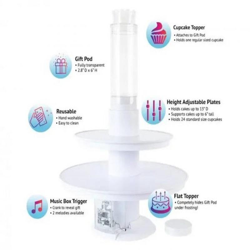 Check out the surprise cake stand that pops out a secret gift from the center of the cake in action via the video below.