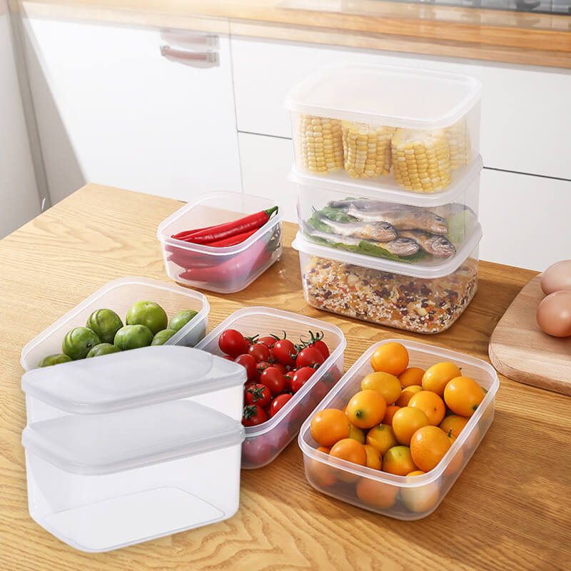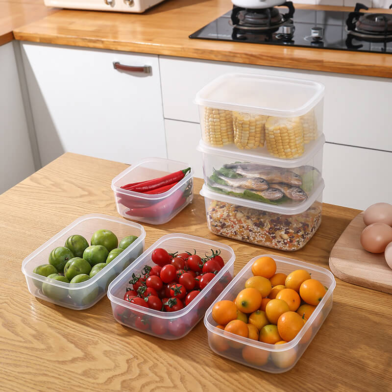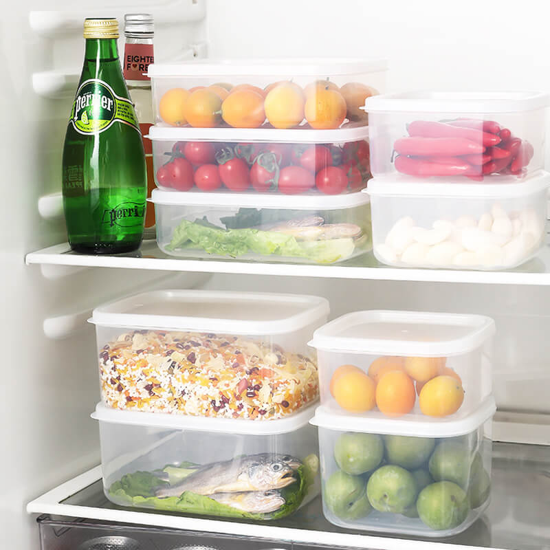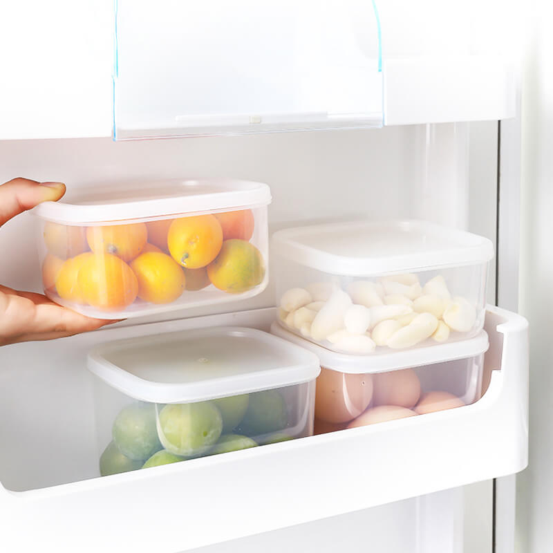 The fruit storage containers for the fridge 1000ML(12*10.5*9CM),900ML(10.8*12*9.3CM). 2 sizes of pantry bins design can make full use of all the space of refrigerators & kitchen cabinets.