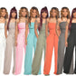Newest Off Shoulder Solid Color Smocked Jumpsuit,you will love it.