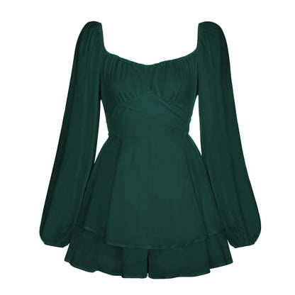 Dream of romantic summer nights in this enchanting romper styled with long bishop sleeves and a square neck.