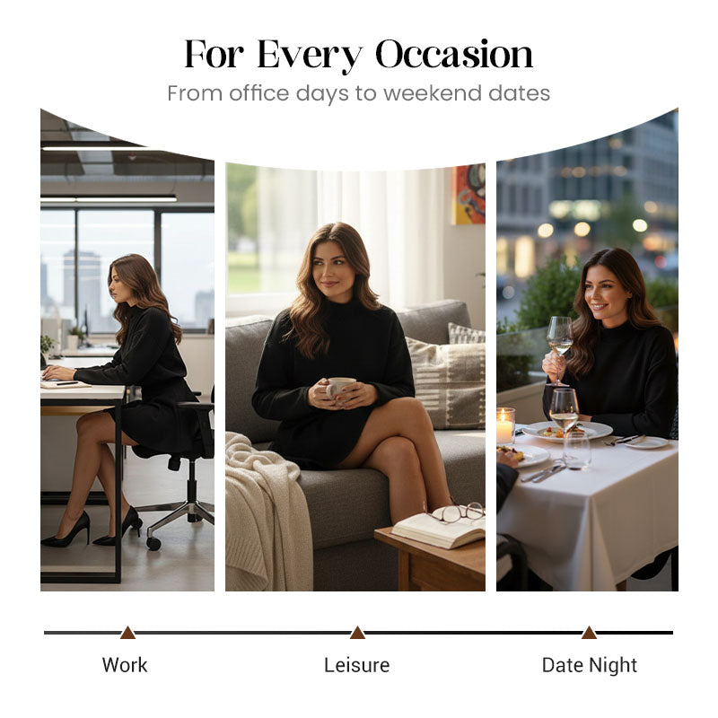✨💓Women's Mock Neck Knit A-Line Mini Dress